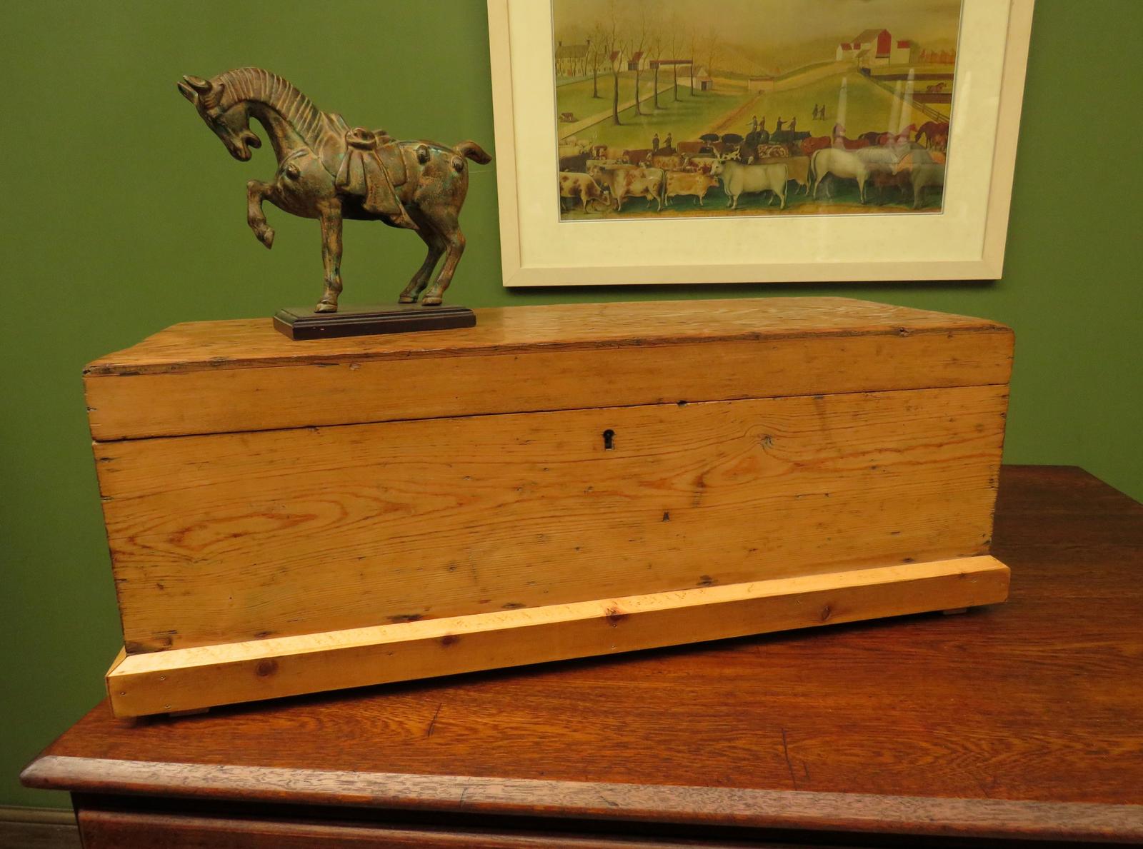 Antique Pine Tool Chest Trunk wInterior Trays
