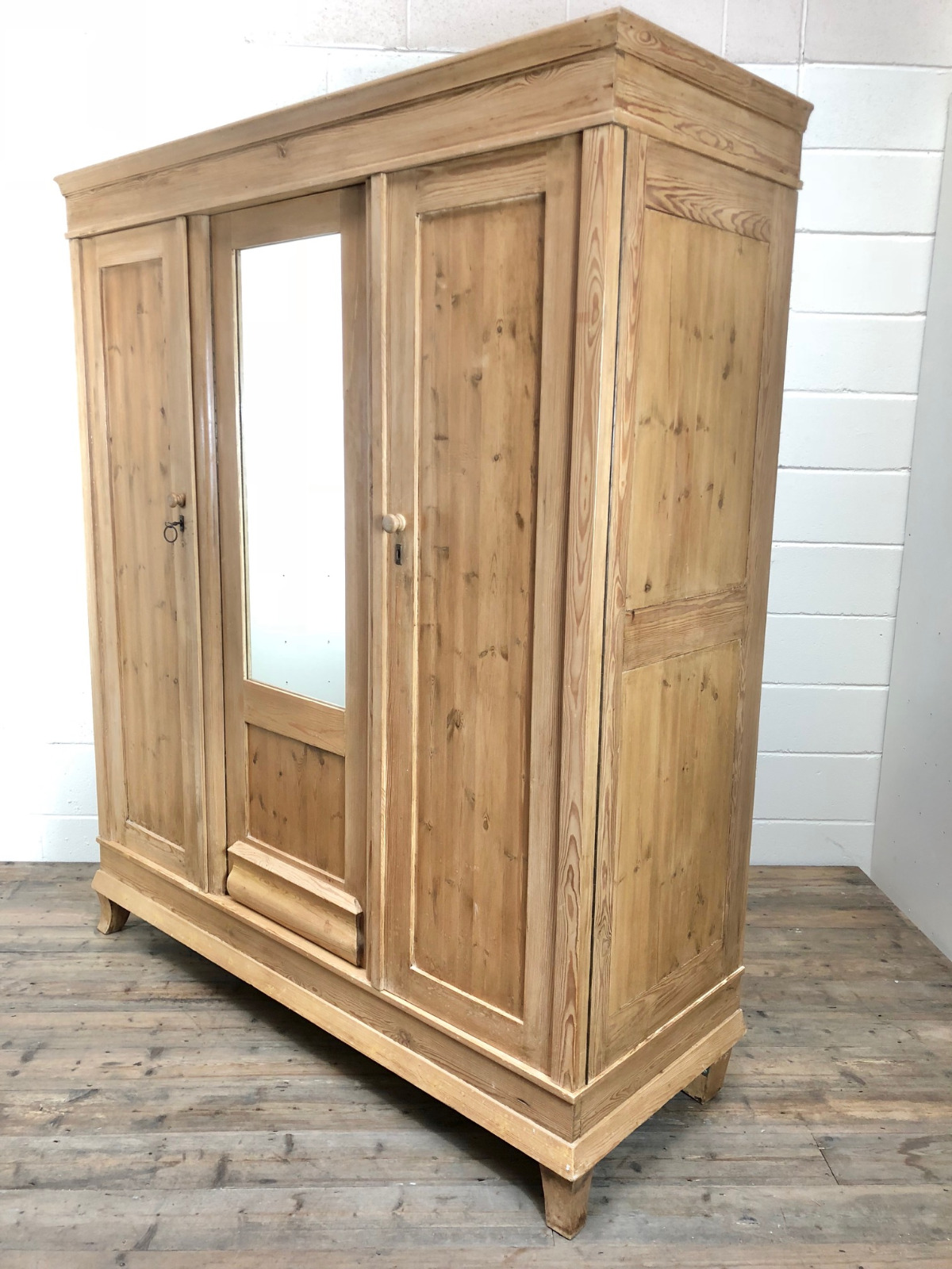 Antique Pine Triple Wardrobe with Mirror (1 of 1)