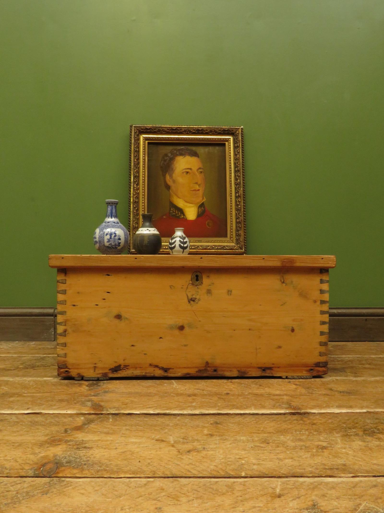 Antique Pine Trunk, Storage Chest, Victorian Sea Chest, Tool Chest