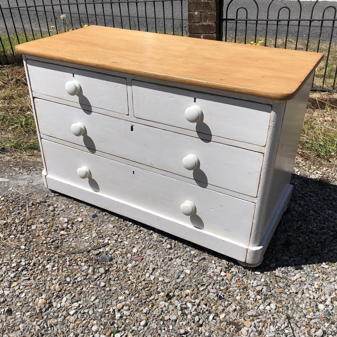 Antique Pine Two over Two Chest of Drawers Part Painted