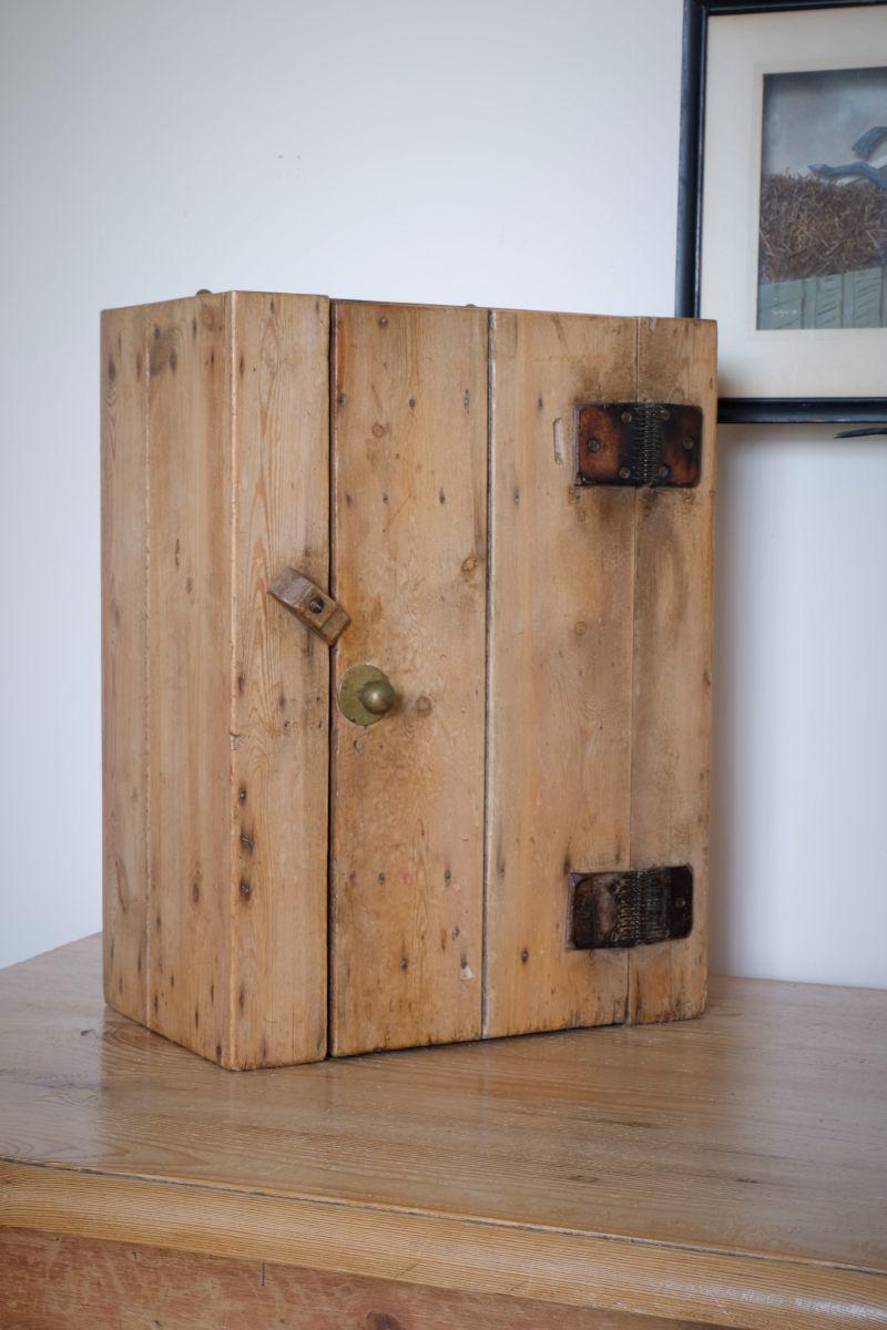 Antique Pine Wall Cupboard with Rare Leather Hinges
