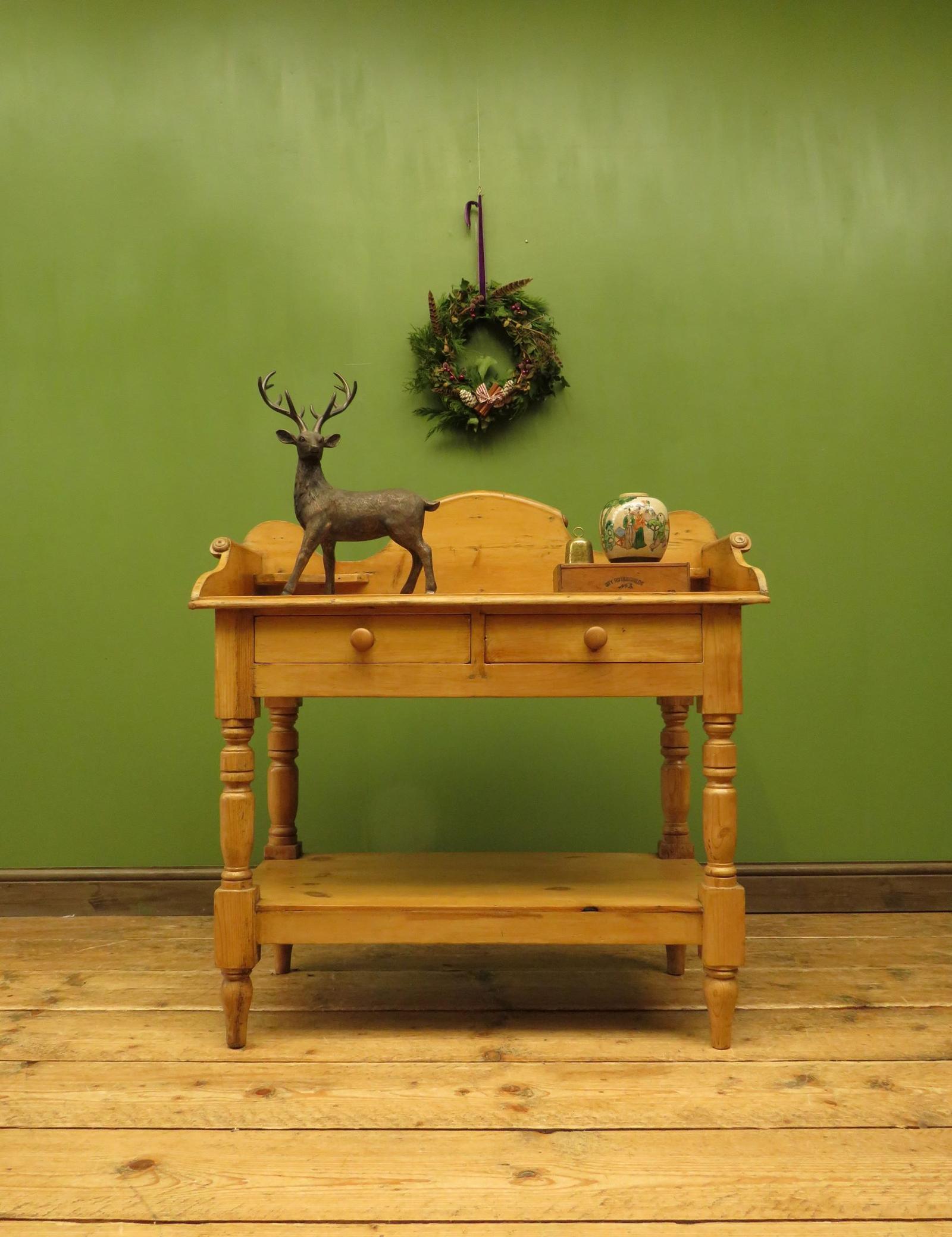Antique Pine Washstand Table With Drawers