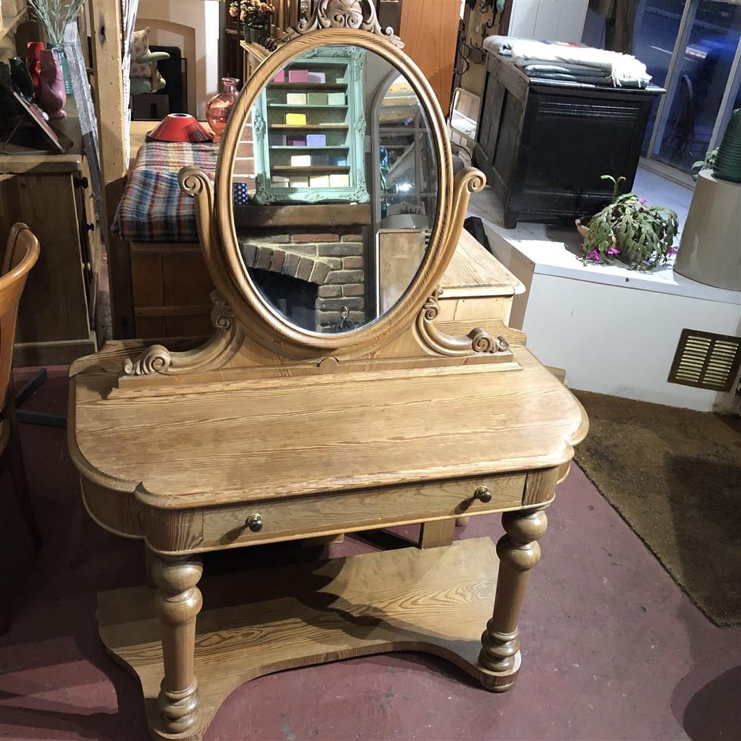 Antique Pitch Pine Duchess Dressing Table Console with Mirror