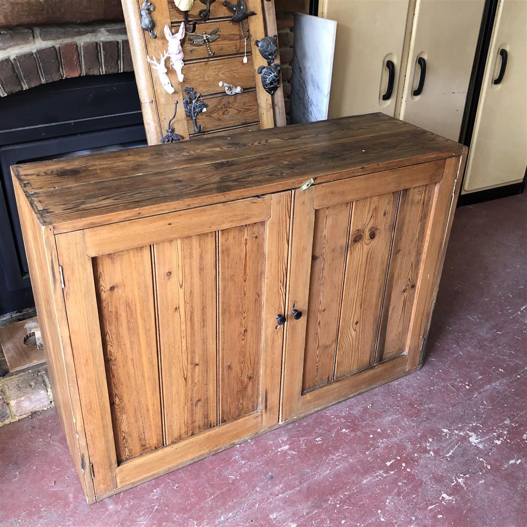 Antique Pitch Pine Two Door Cupboard Sideboard