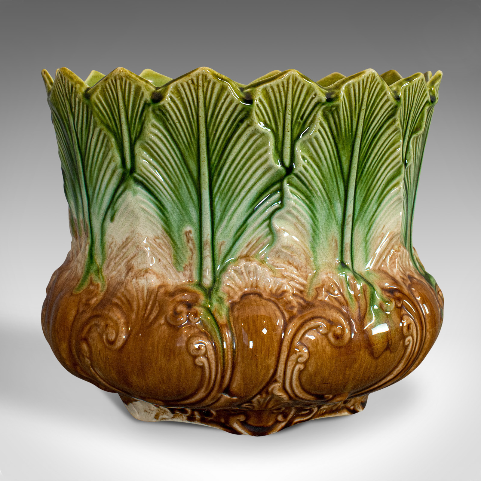 Antique Planter, English, Majolica, New Leaf, Jardinière, Art Nouveau, Victorian