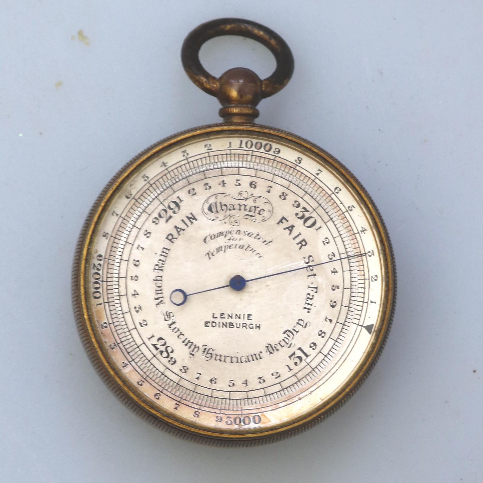 Antique Pocket Barometer with Hurricane Forecast by Lennie Edinburgh 19th Century
