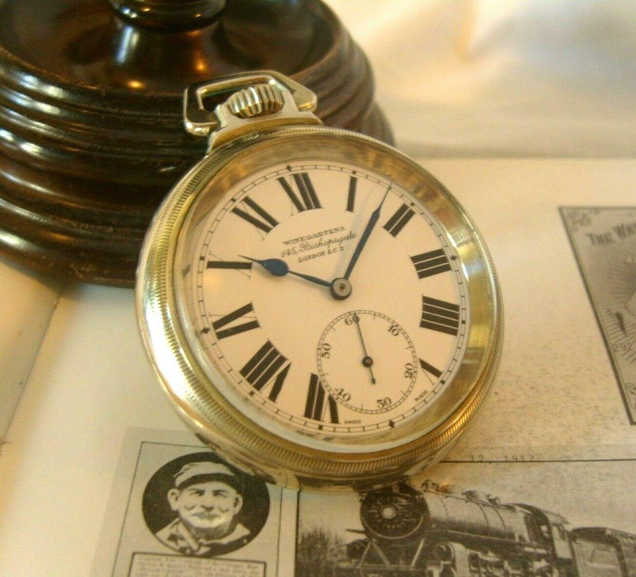 Antique Pocket Watch 1920s Winegartens 7 Jewel Railway Regulator Silver Nickel Case FWO