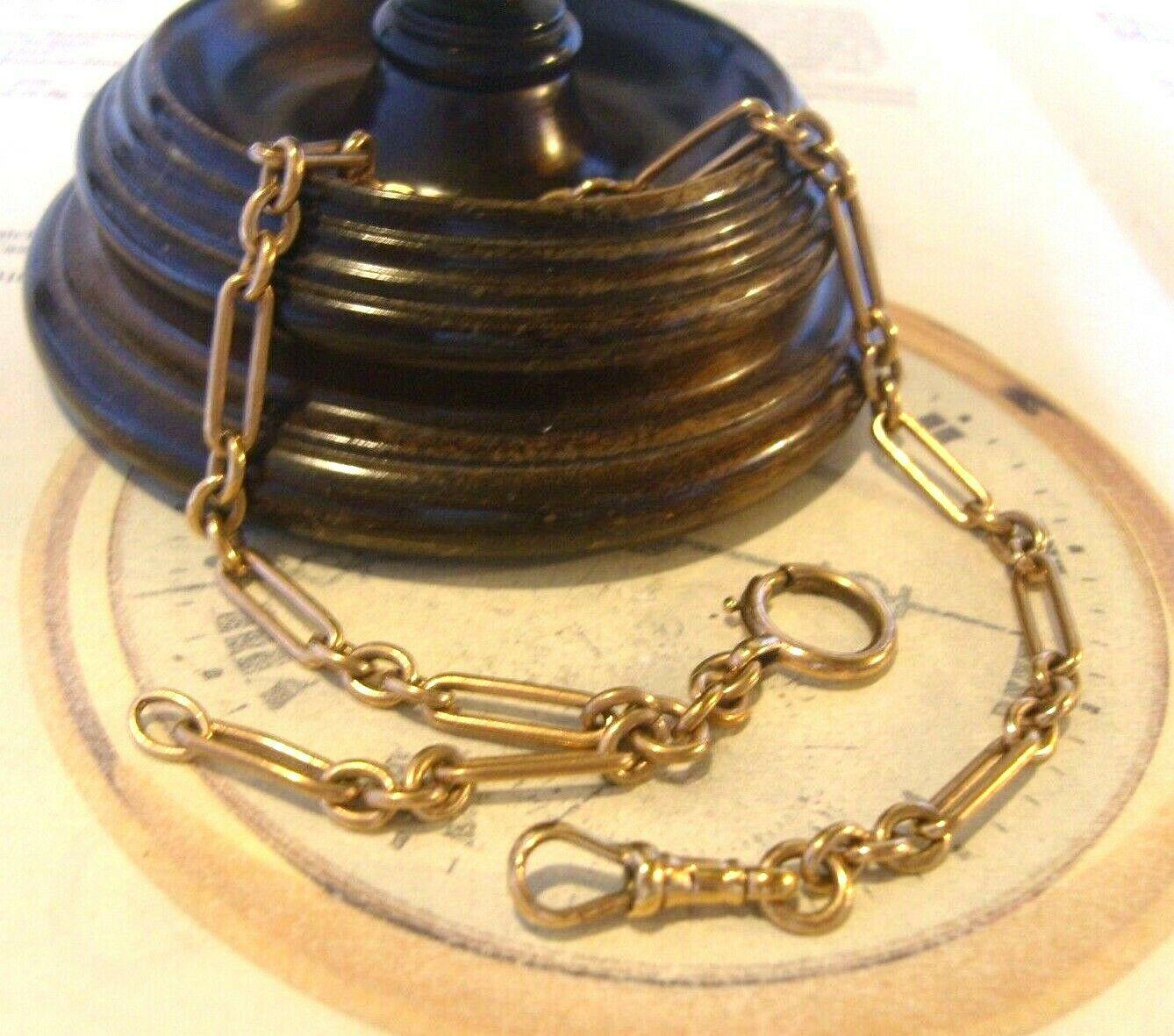 Antique Pocket Watch Chain 1890 Victorian 10ct Rose Gold Filled Fancy Link Albert