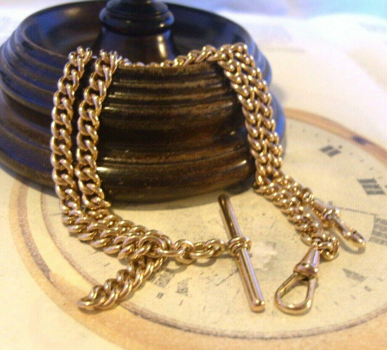 Antique Pocket Watch Chain 1890 Victorian 14ct Rose Gold Filled Albert With T Bar