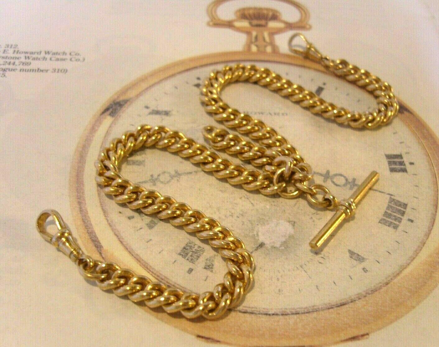 Antique Pocket Watch Chain 1890 Victorian Large 14ct Gold Filled Albert With T Bar