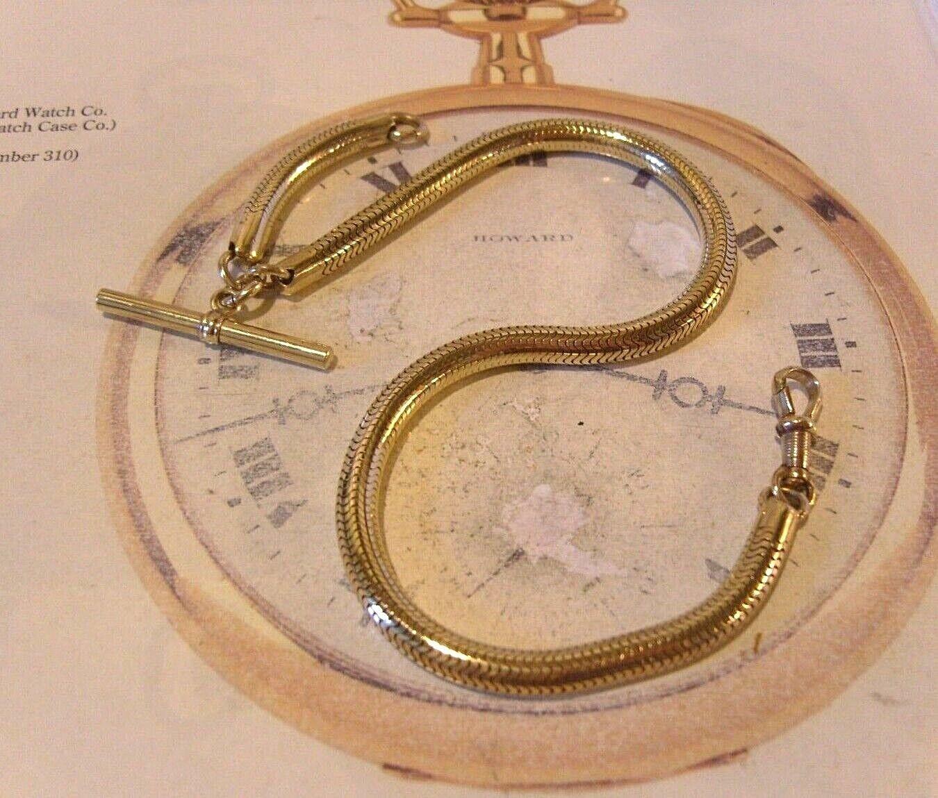 Antique Pocket Watch Chain 1890s Antique Large Brass Snake Link Albert With T Bar