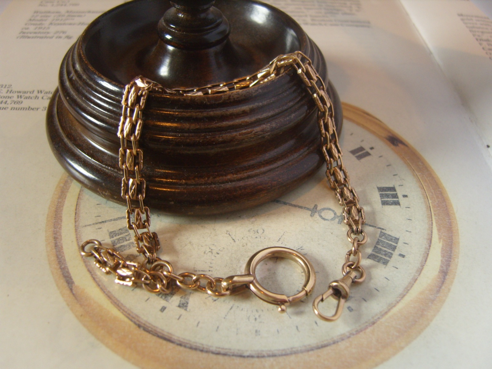 Antique Pocket Watch Chain 1890s Victorian 10ct Rose Gold Filled Fancy Albert