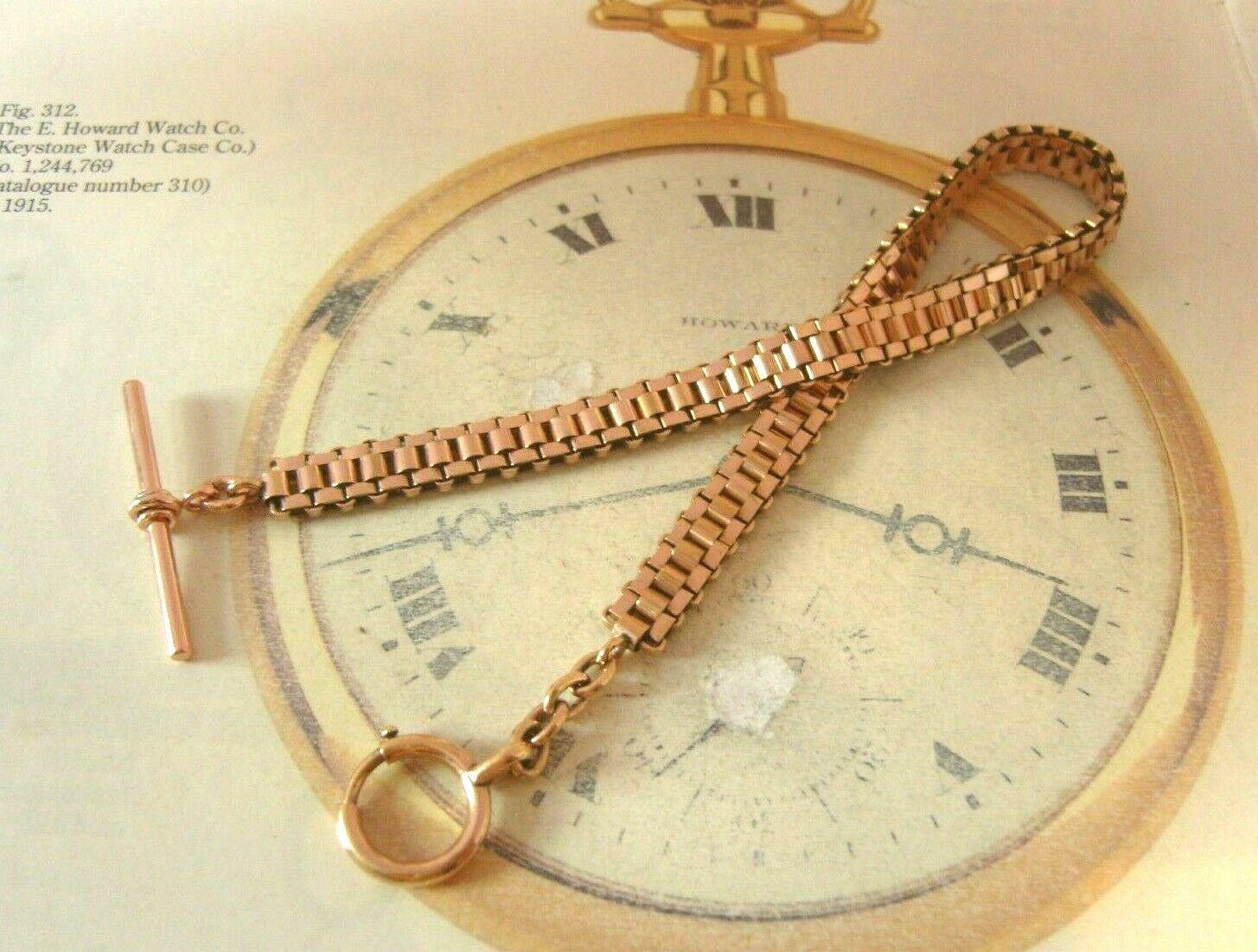 Antique Pocket Watch Chain 1890s Victorian French Large 10ct Rose Gold Filled Albert