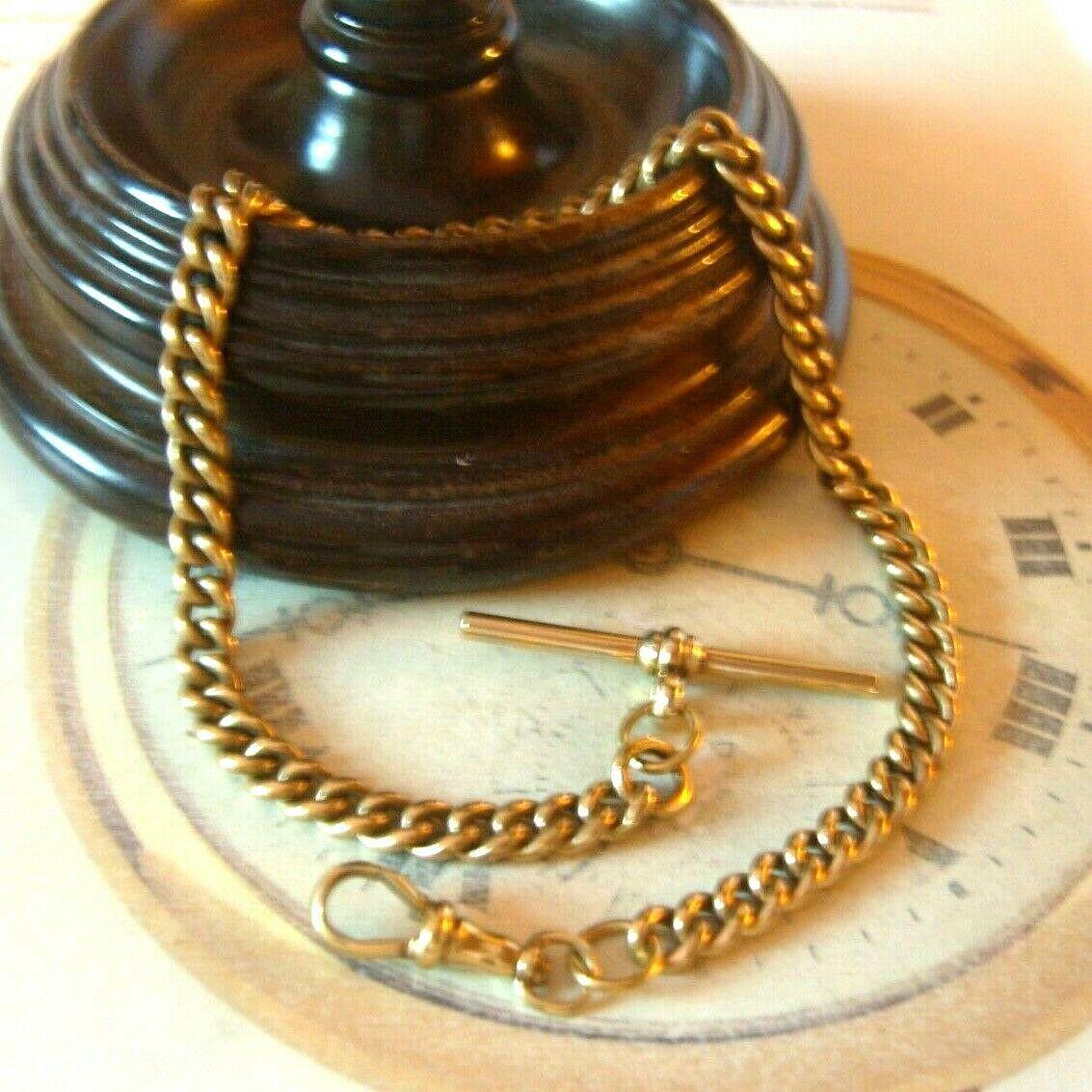 Antique Pocket Watch Chain 1890s Victorian NCR Co Large Brass Albert With T Bar