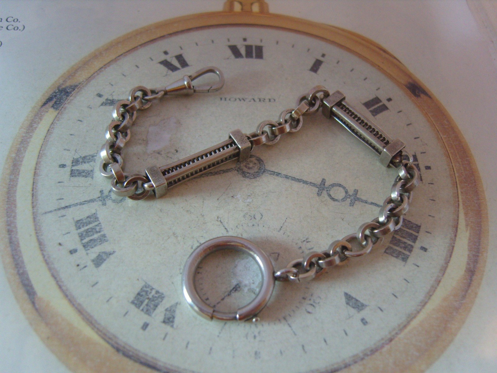 Antique Pocket Watch Chain 1890s Victorian Silver Nickel Fancy Albert