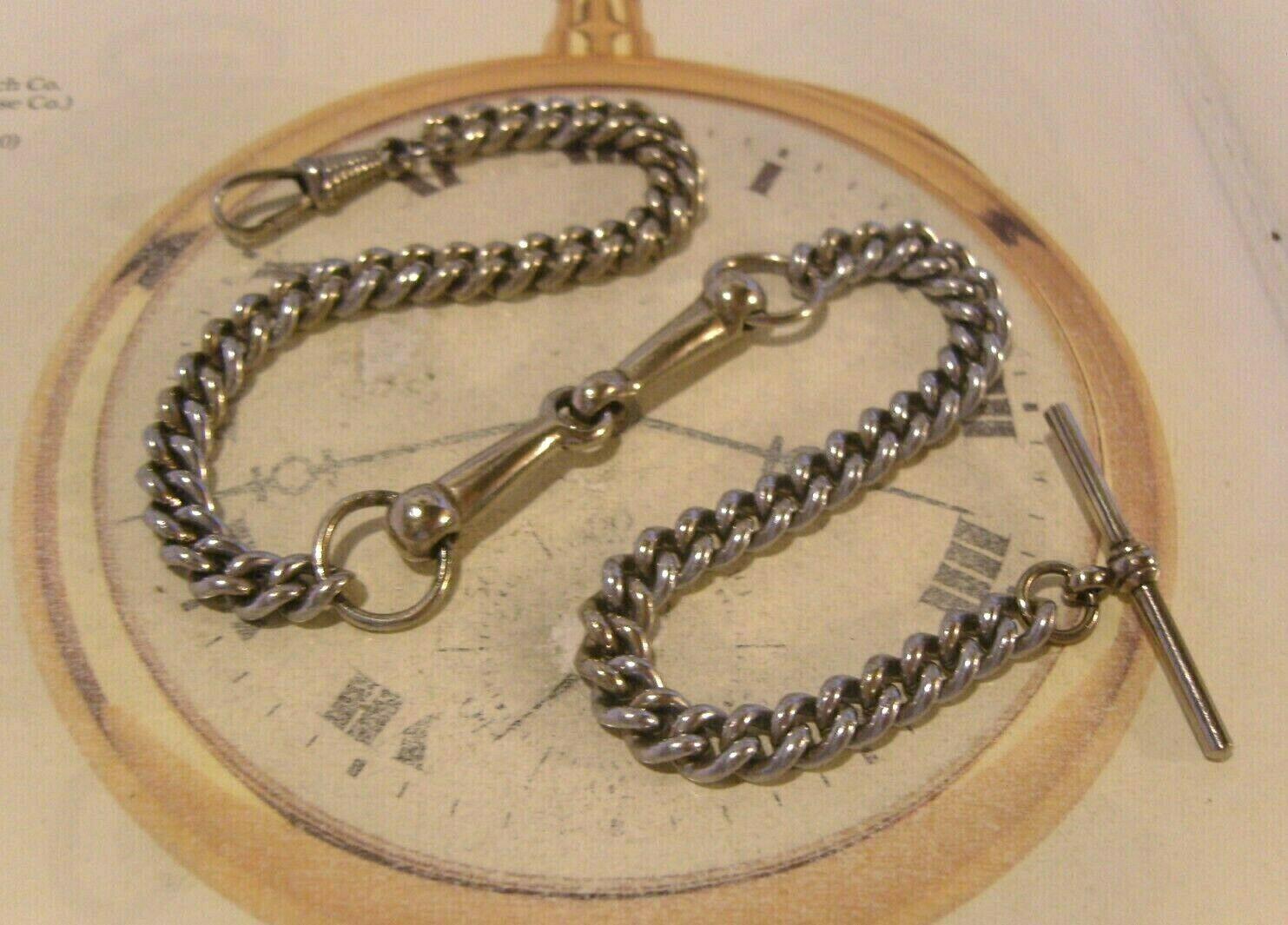 Antique Pocket Watch Chain 1890s Victorian Steel Albert With Horses Snaffle Bit
