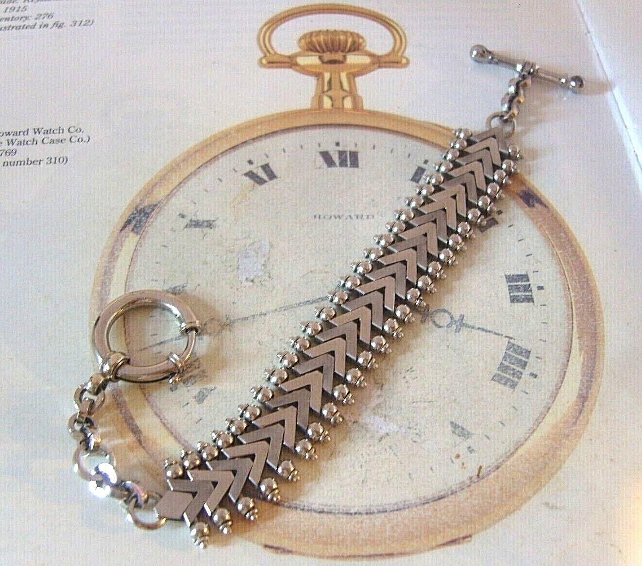 Antique Pocket Watch Chain 1920s Huge Silver Nickel Fancy Albert With T Bar