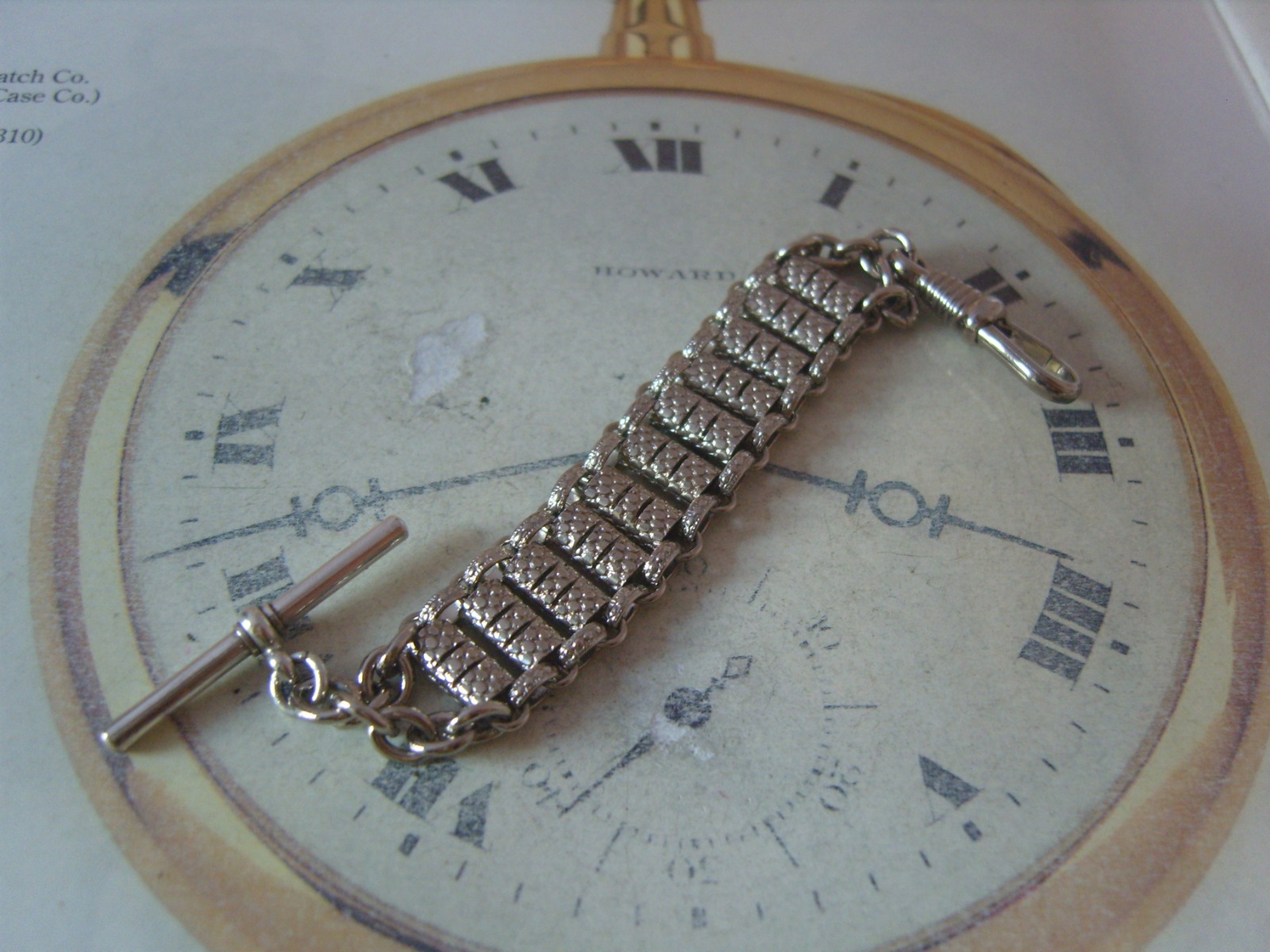 Antique Pocket Watch Chain 1920s Ornate Silver Nickel Fancy Albert with T Bar