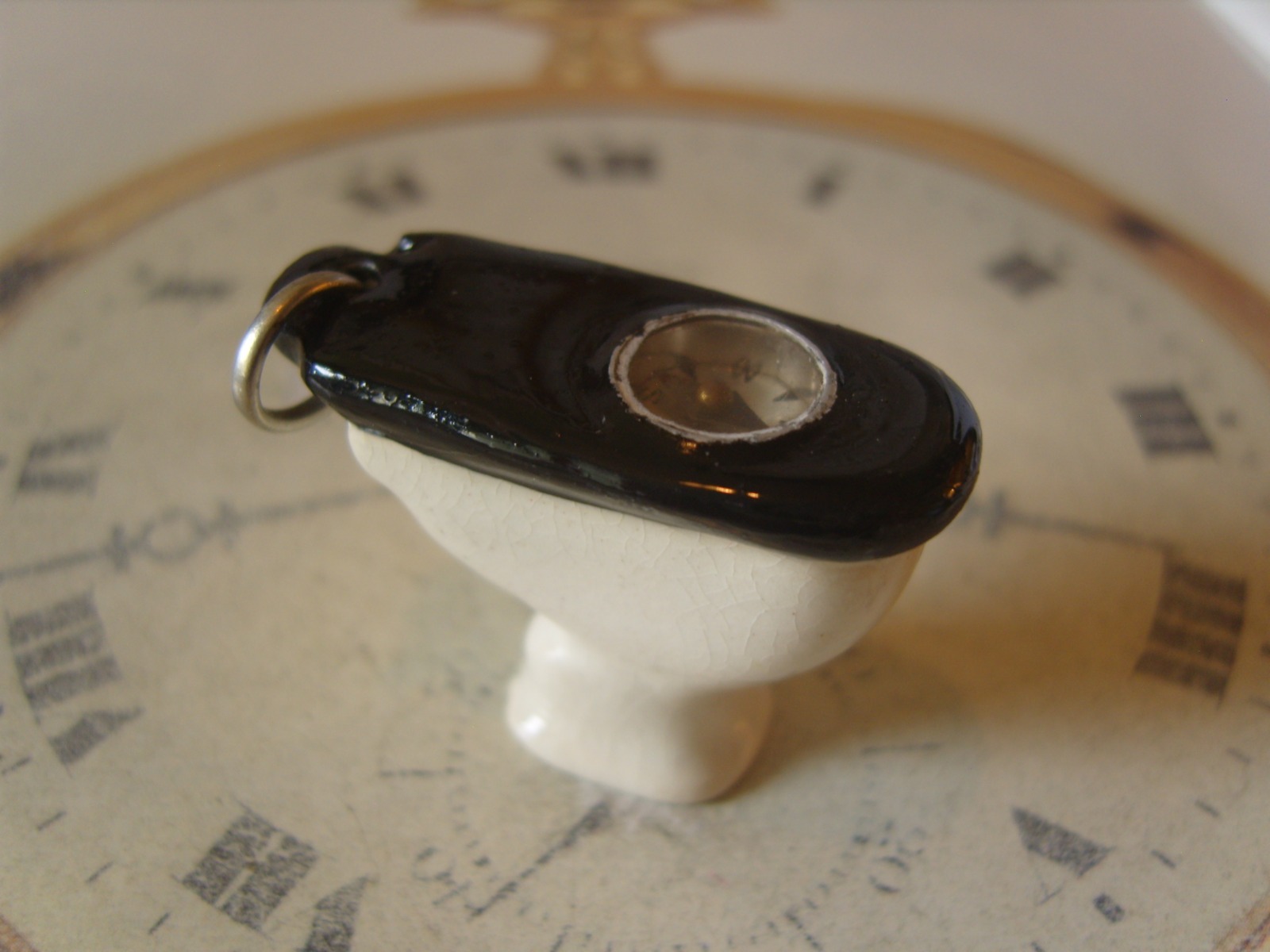 Antique Pocket Watch Chain Compass Fob 1890s Victorian Porcelain Toilet Fob