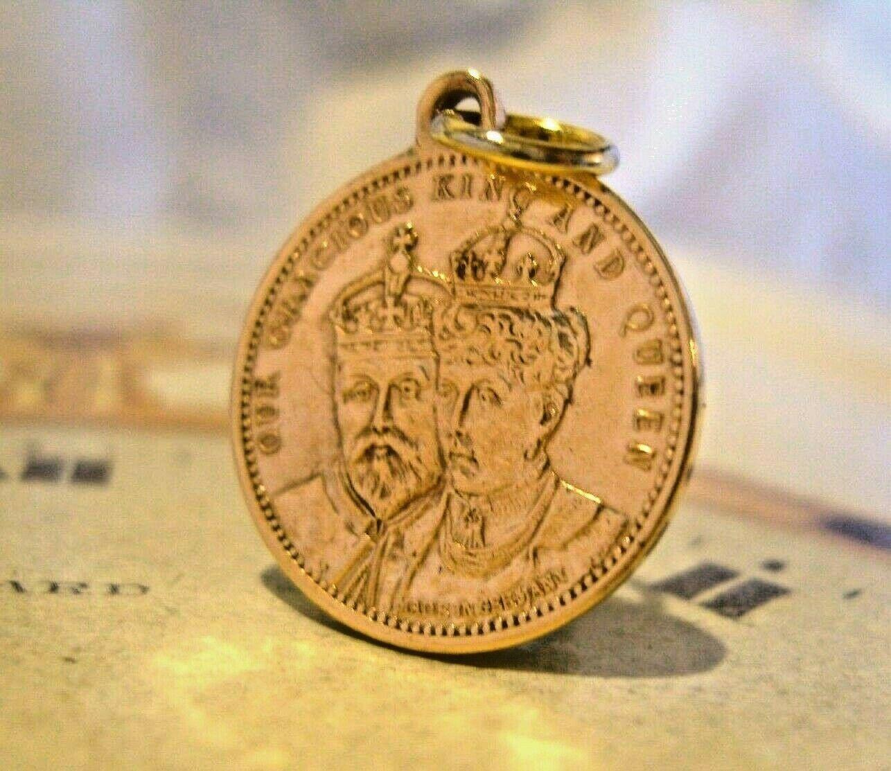 Antique Pocket Watch Chain Coronation King Edward V11 Fob 1902 Rose Gilt Coin Fob