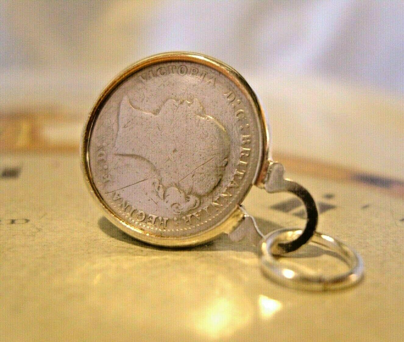 Antique Pocket Watch Chain Fob 1887 Silver Three Pence Coin Old 3d With Silver Plated Mount