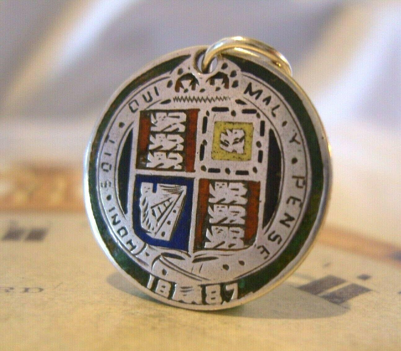 Antique Pocket Watch Chain Fob 1887 Victorian Silver & Enamel Shilling Coin Fob