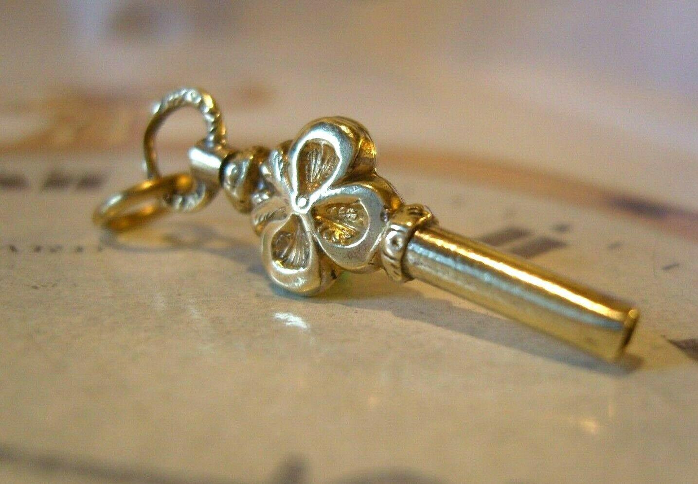 Antique Pocket Watch Chain Fob 1890s Victorian Brass Key Irish Shamrock Fob