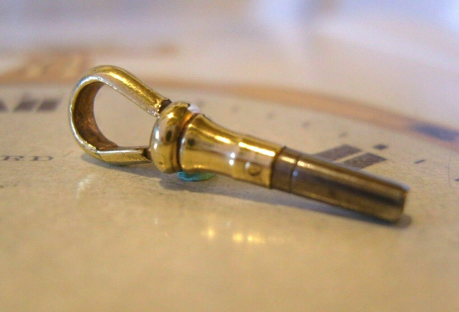 Antique Pocket Watch Chain Fob 1890s Victorian Brass & Steel Dog Clip Key Size 6