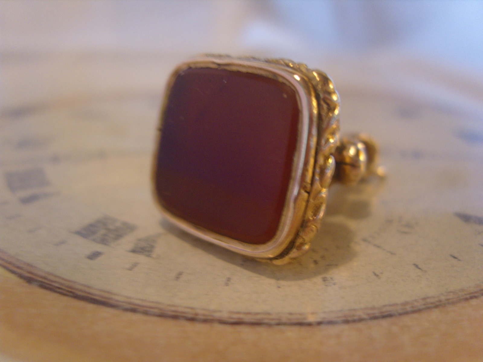 Antique Pocket Watch Chain Fob 1890s Victorian Large 12ct Gold Filled & Carnelian Stone Fob