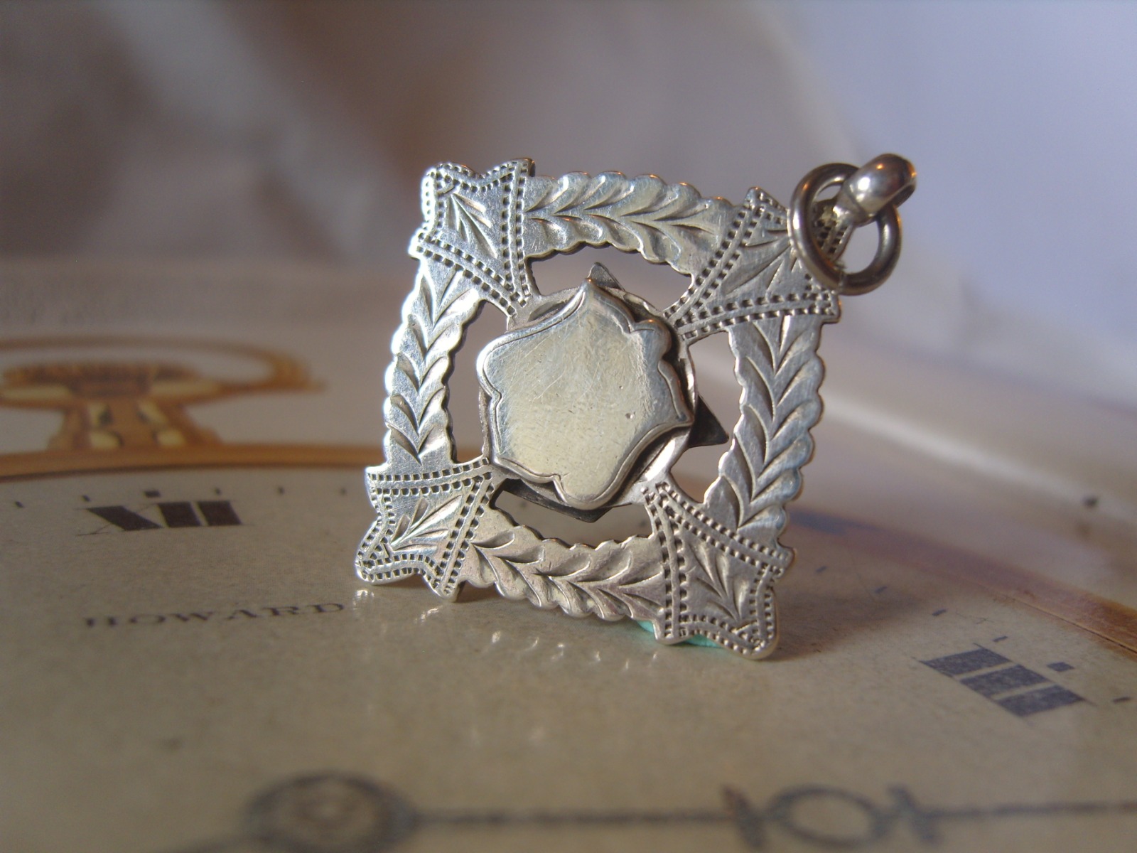 Antique Pocket Watch Chain Fob 1890s Victorian Silver Nickel Large Shield Fob