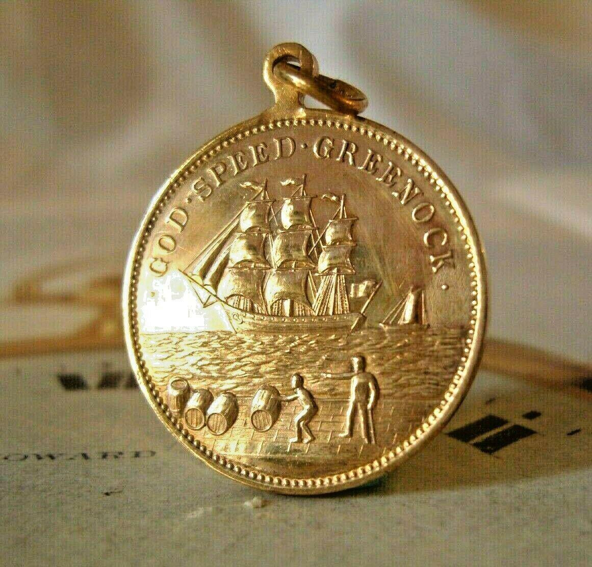 Antique Pocket Watch Chain Fob 1902 King Edward V11 & Greenock Ship Rose Gilt Fob
