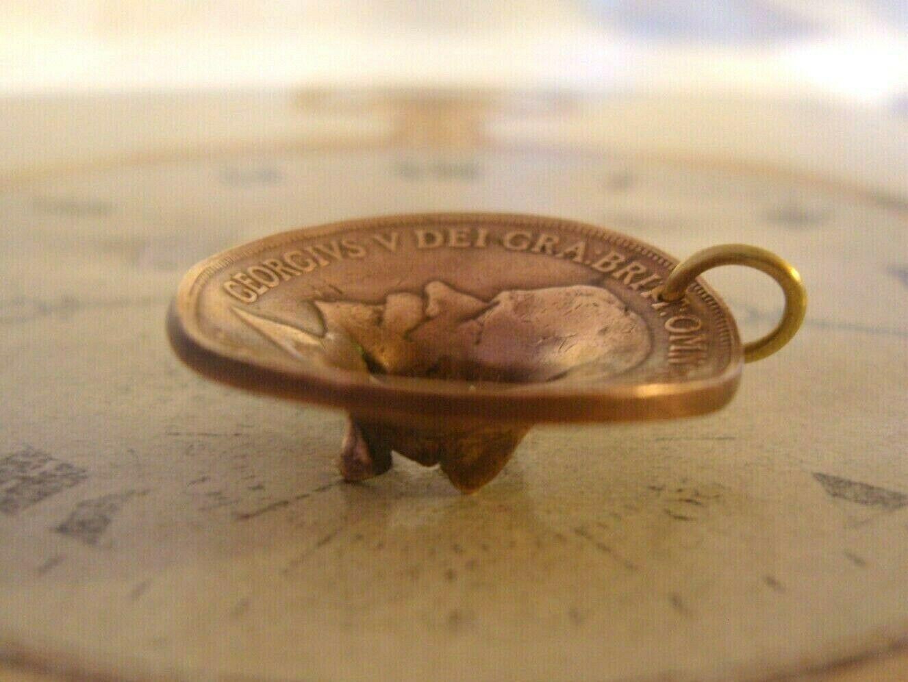 Antique Pocket Watch Chain Fob 1914 WW1 English Penny Coin Fob With Bullet Hole
