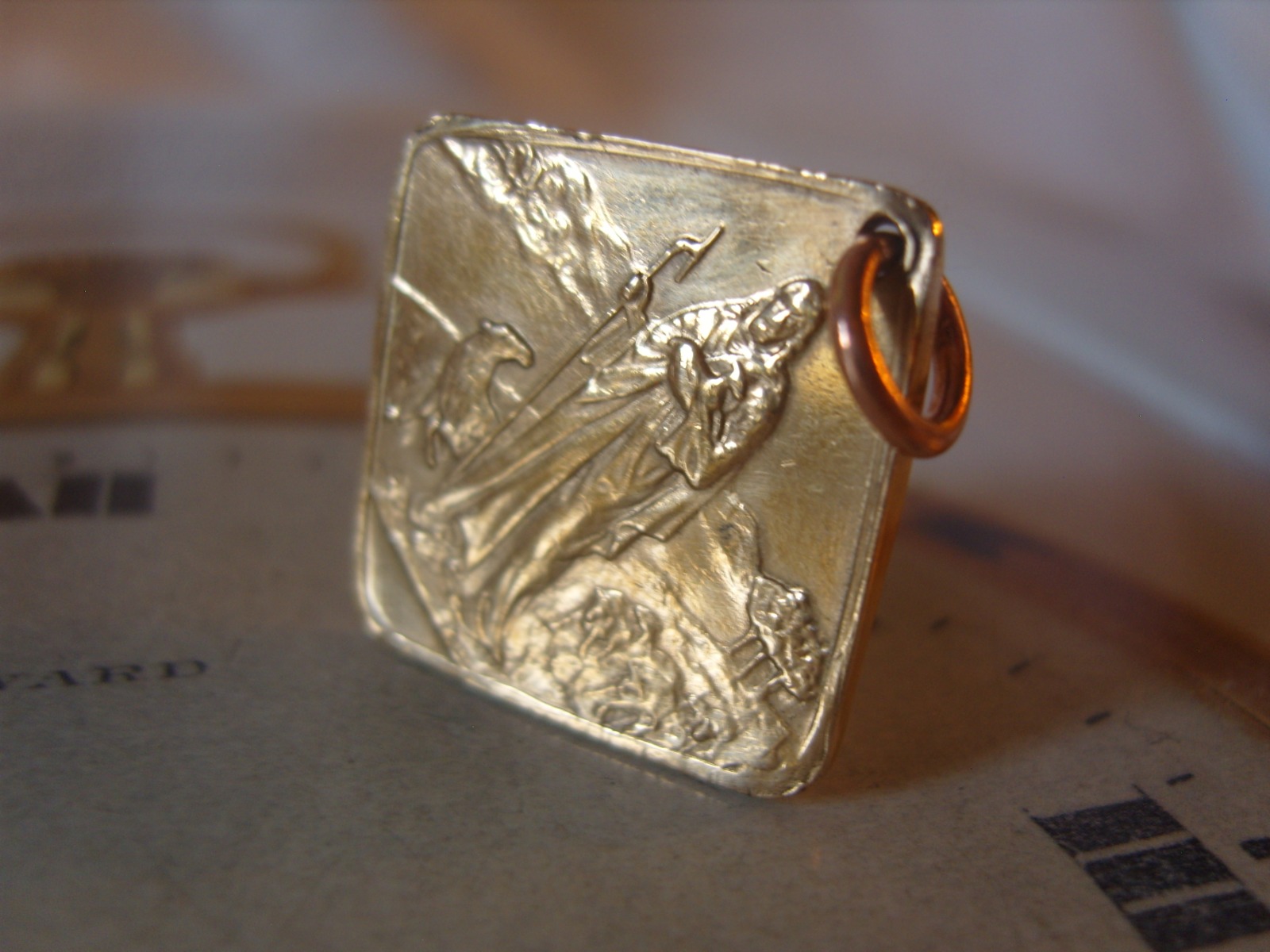 Antique Pocket Watch Chain Fob 1920s Large Gilt Religious the Good Shepherd Fob