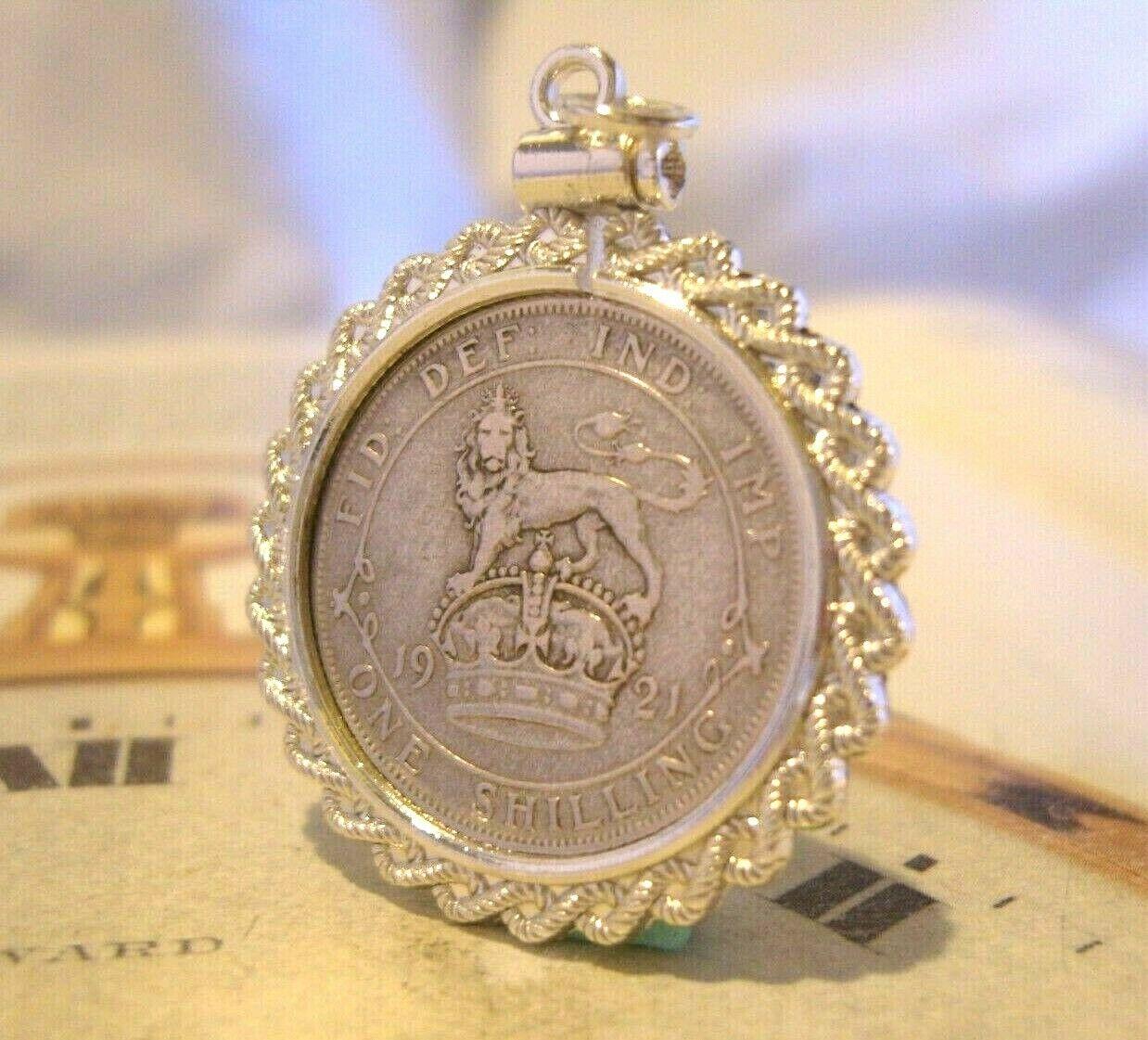 Antique Pocket Watch Chain Fob 1921 Lucky Silver Shilling 5d Coin Fob in Silver Plated Mount