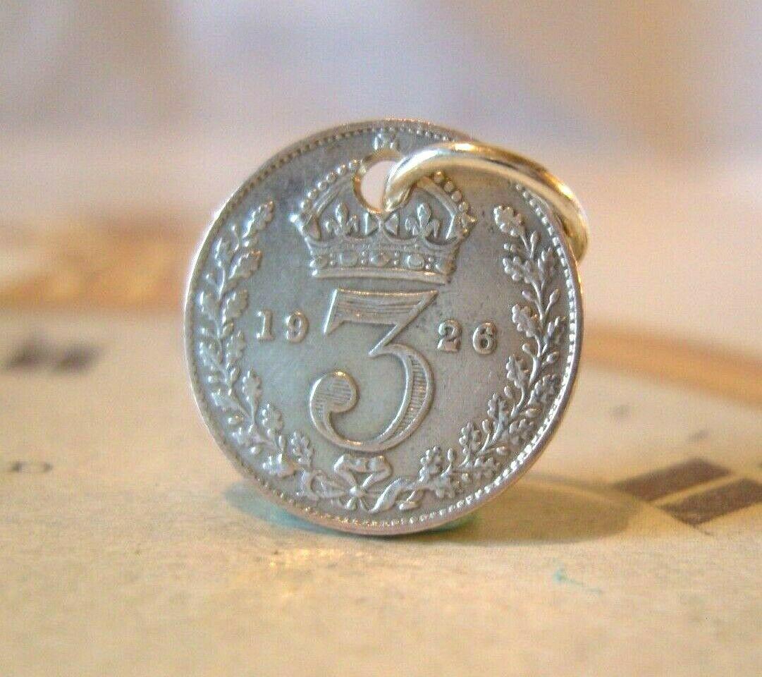 Antique Pocket Watch Chain Fob 1926 Silver Lucky Three Pence Old 3d Coin Fob