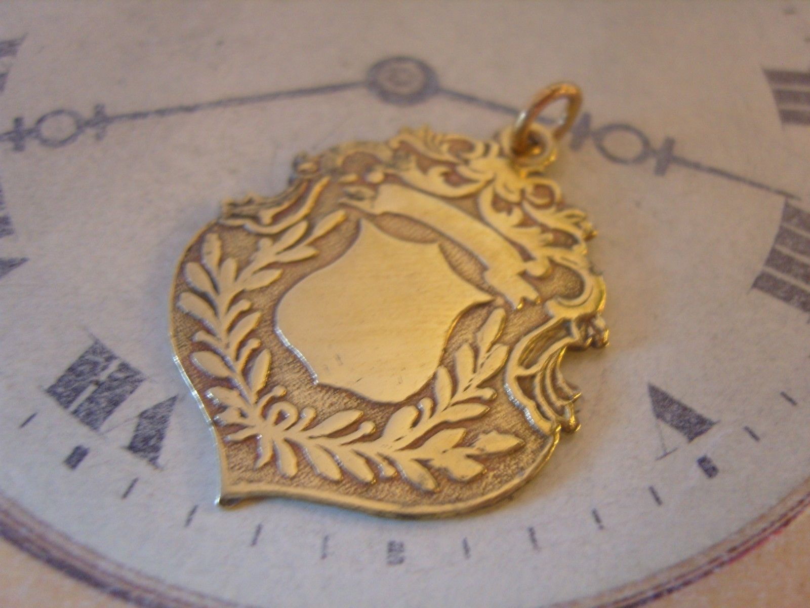 Antique Pocket Watch Chain Fob Victorian 1890s 9ct Rolled Gold Shield Watch Fob