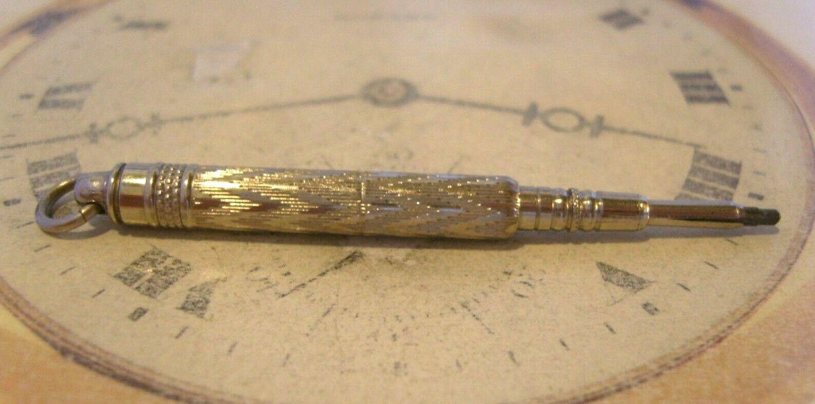 Antique Pocket Watch Chain Pencil Fob 1920s Silver Nickel Ornate Retractable Fob