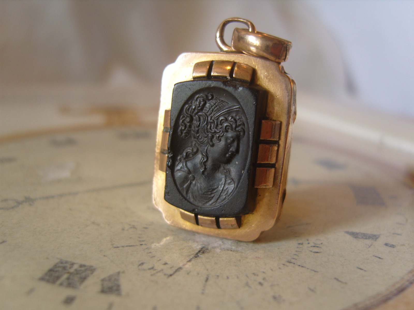 Antique Pocket Watch Chain Photograph Fob 1890s Victorian 10ct Rose Gold Filled Large Intaglio Fob