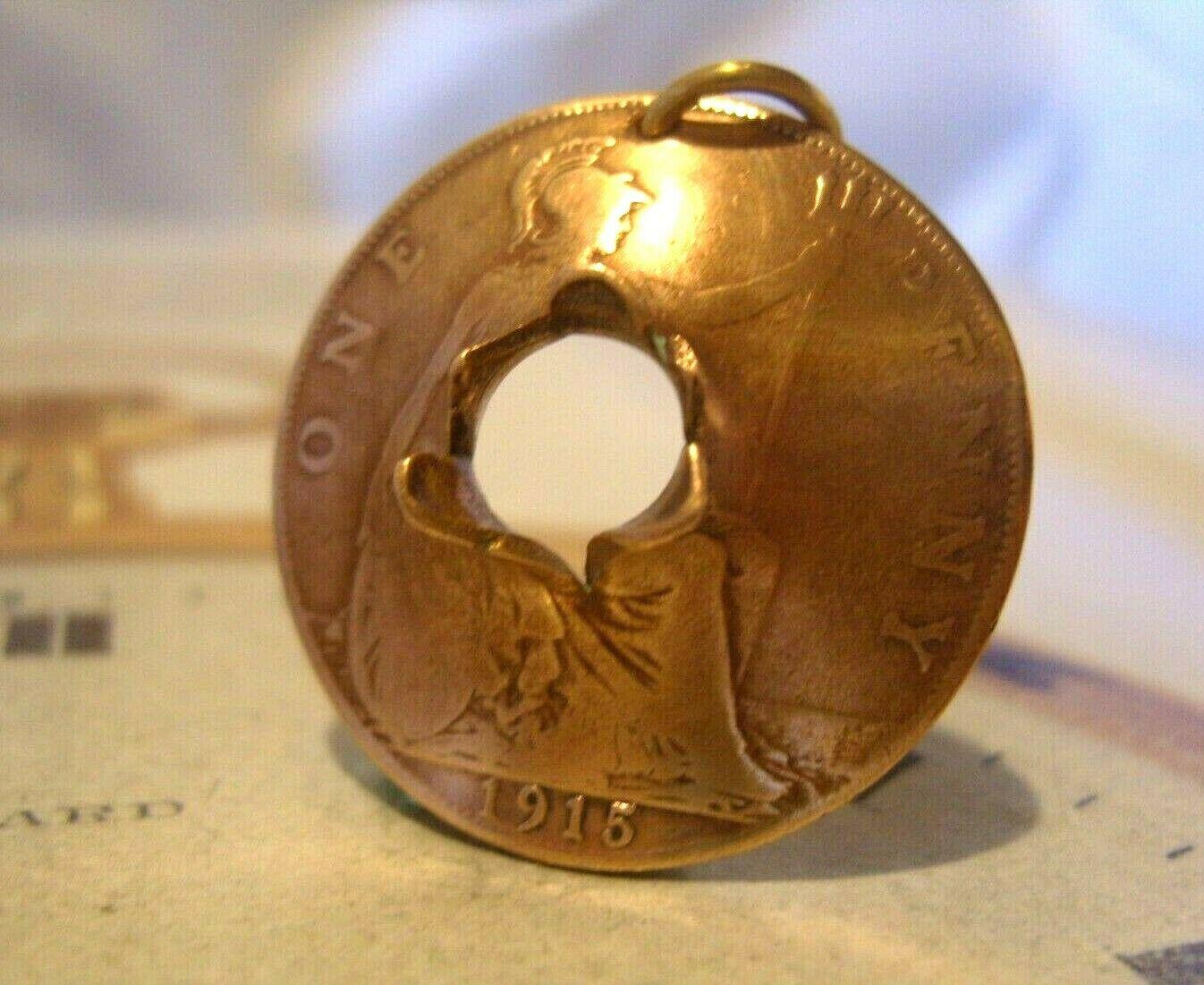 Antique Pocket Watch WW1 Bullet Hole Penny Fob 1915 Old English Coin Fob