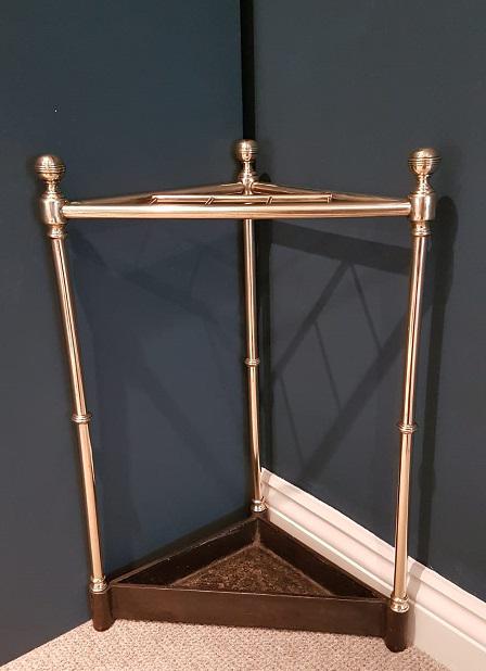 Antique Polished Brass Corner & Cast Iron Stick Stand