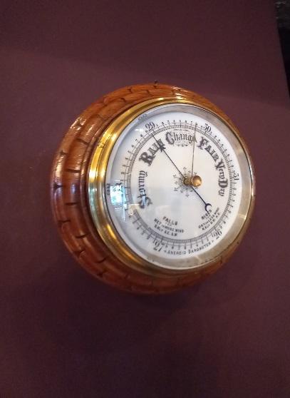Antique Polished Oak Gimped Edge Ship's Barometer