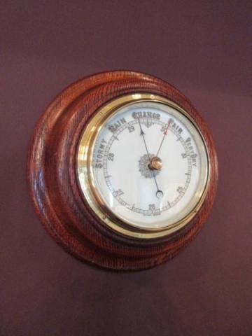 Antique Polished Oak Porcelain Dial Aneroid Barometer