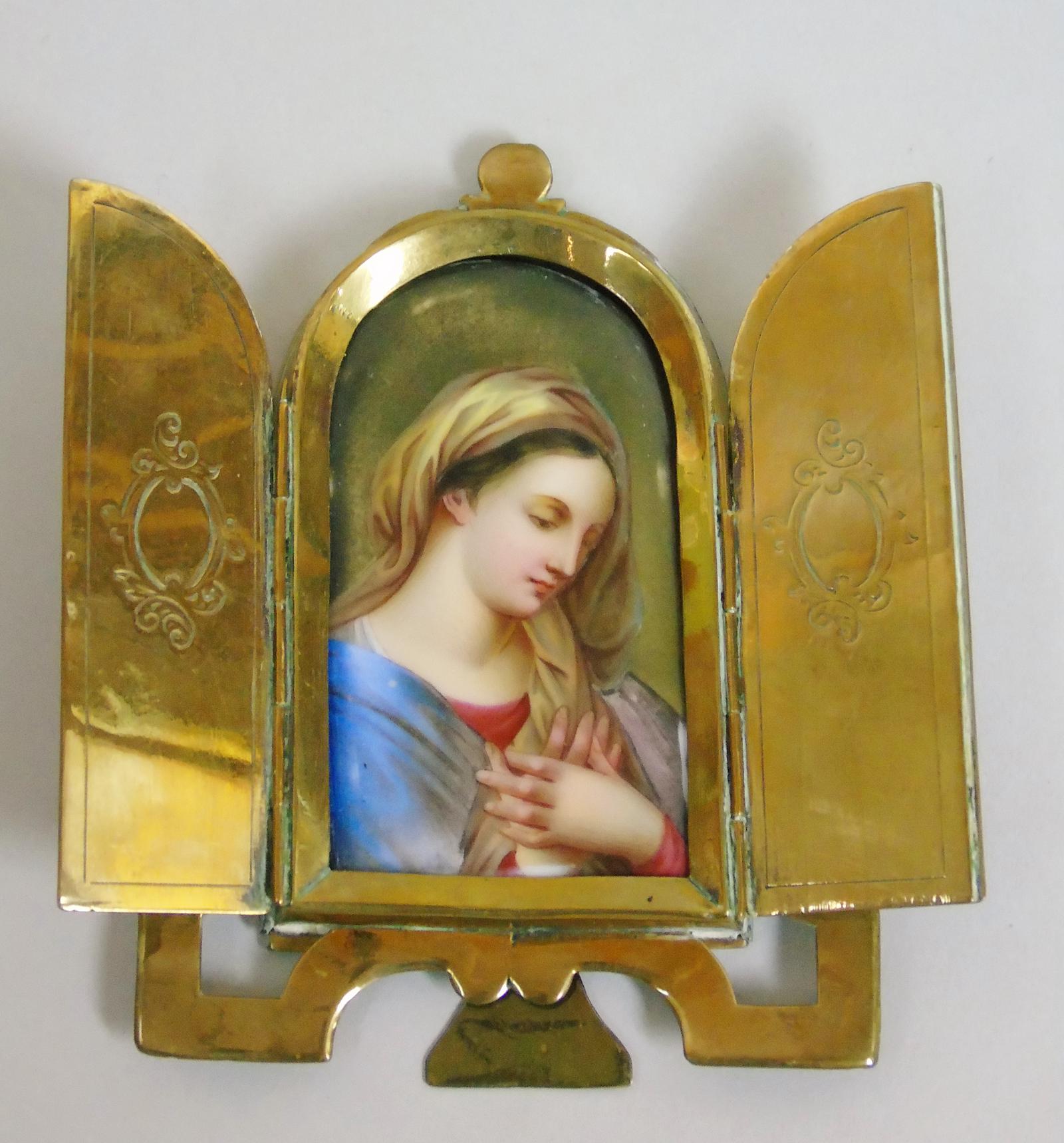 Antique Porcelain Plaque Portrait Miniature of the Madonna