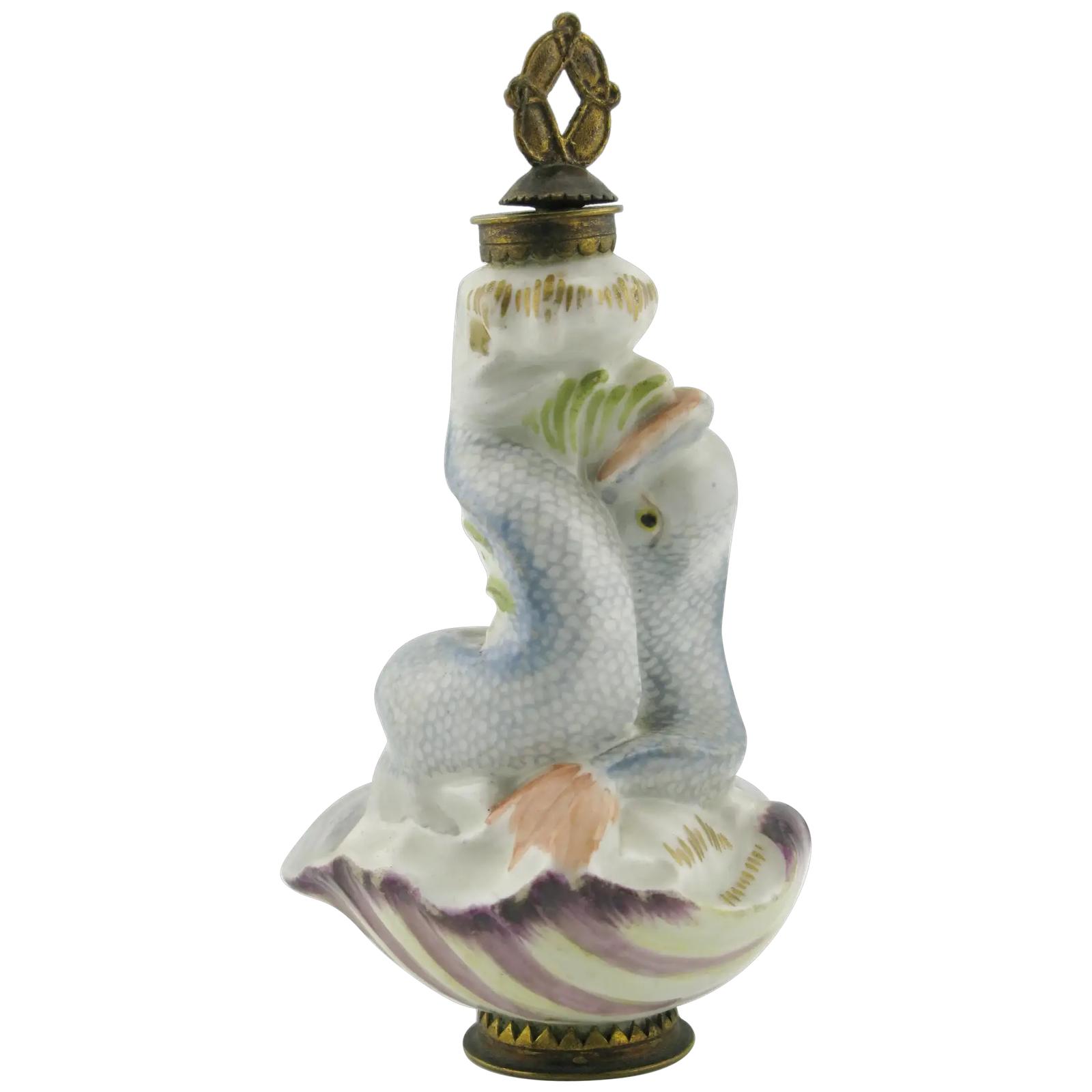 Antique Porcelain Scent Bottle 2 Dolphins on Shell