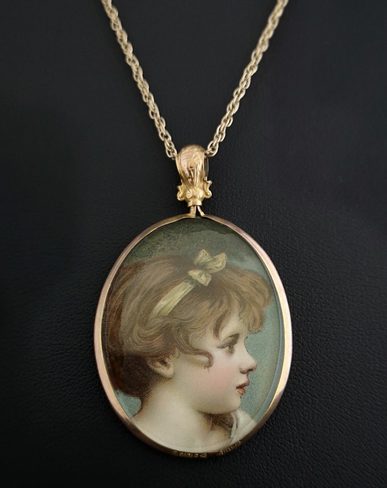 Antique Portrait Pendant, Locket, Necklace 9ct Gold