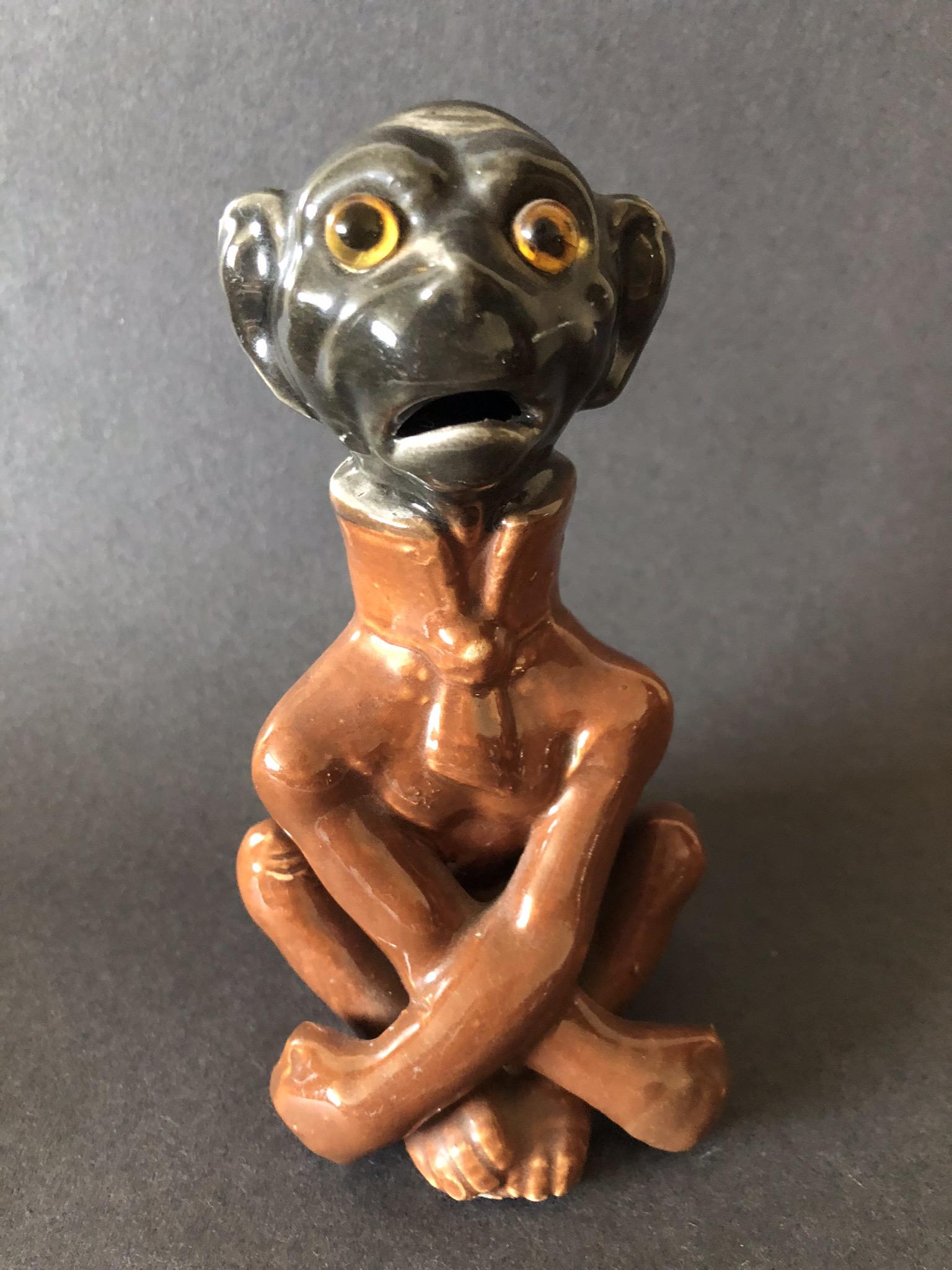 Antique Pottery Monkey with Glass Eyes c.1880
