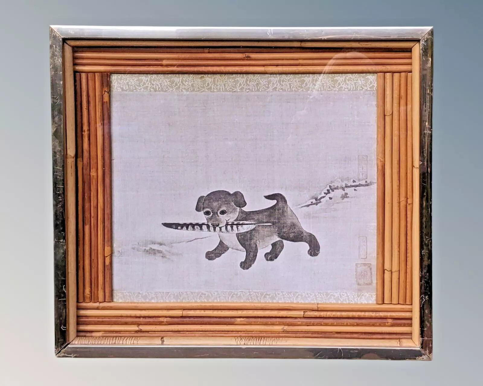 Antique Print After Am Li Puppy with Feather (1 of 7)