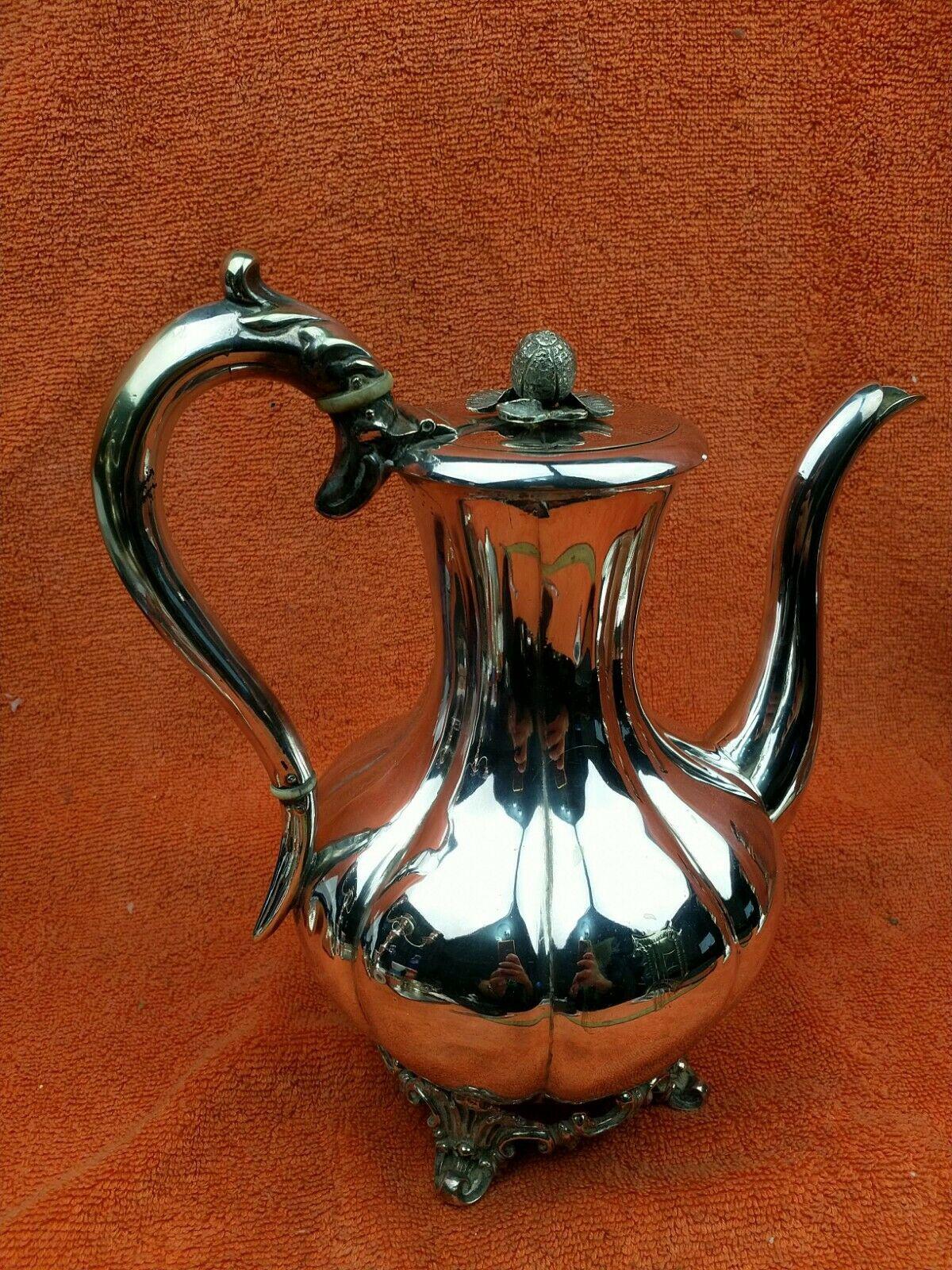 Antique Pumpkin Shaped Silver Plated Coffee Water Tea Pot c.1830
