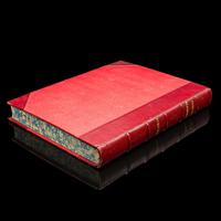 This is an antique Punch's almanac compendium for 1848-1887. An English, bound illustrated annual set, dating to the late Victorian period, circa 1880. Established in 1841, Punch magazine was a weekly publication of humour and satire, illustrated by numerous artists and taking the titular Mr. Punch from the popular puppet show as its mascot. The magazine lasted throughout the Victorian period, with publication ceasing in 1992. Charming compendium, compiling almost 40 years of Punch's Almanac. Displays a desirable, intact antique condition with minor colouration. Professionally rebound in scarlet red cloth on board, with gold titling. Superb illustrations throughout, being a hallmark of the Punch tradition. Includes multiple extending sections presenting larger illustrations. Useful period features include a calendar and memoranda. This is a superb antique Punch's almanac compendium, profuse with period Victorian wit and detail. Delivered ready to enjoy. We offer a 100% satisfaction guarantee with all of our antiques. Please contact us if you require any further information - we are here to help.