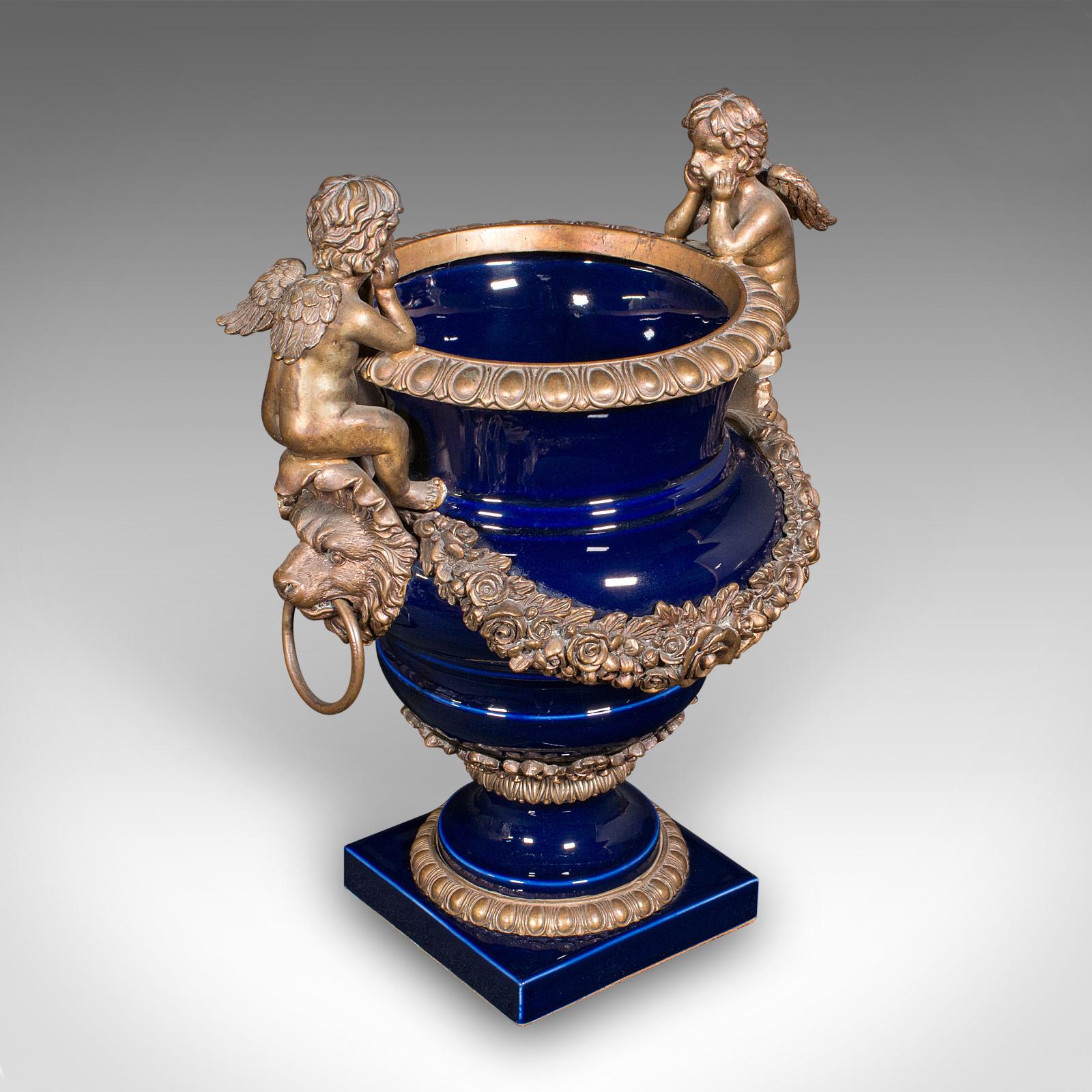 Antique Putti Jardiniere Urn, Italian, Gilt, Ceramic, Planter, Vase, Victorian (1 of 12)